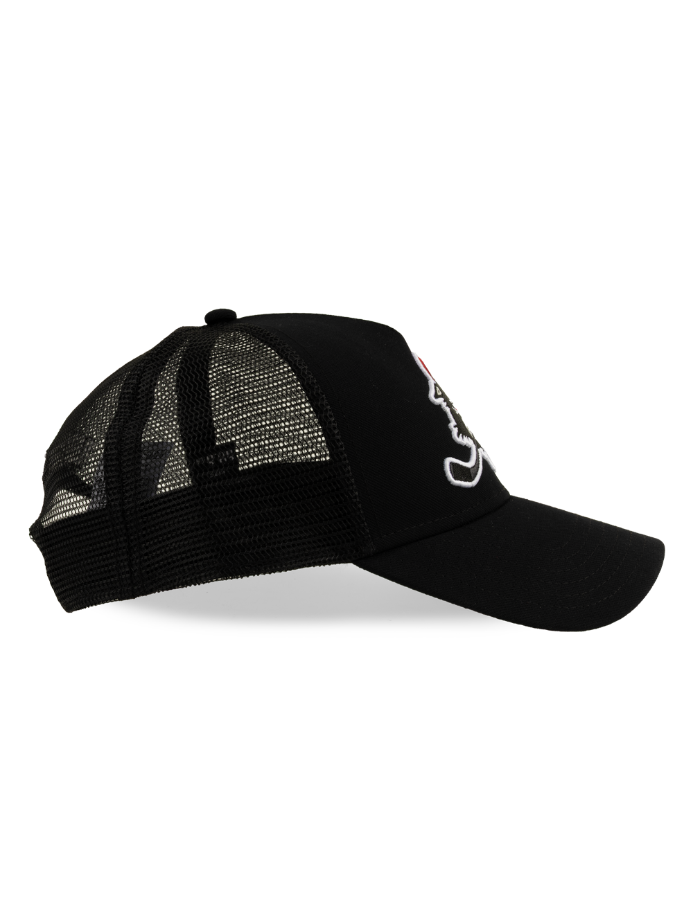 Stilren sort Rødovre Mighty Bulls trucker cap med broderet Mighty Bulls-logo på fronten og “RØDOVRE” broderet bagpå. Cappen har det klassiske trucker-design med mesh bagpå, som giver god ventilation og en let og behagelig pasform.